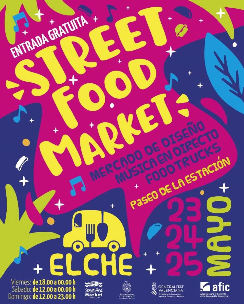 El Paseo de la Estación de Elche se convertirá en el epicentro de la gastronomía y el ocio urbano con la llegada de Elx Street Food Market del viernes 23 al domingo 25 de mayo.