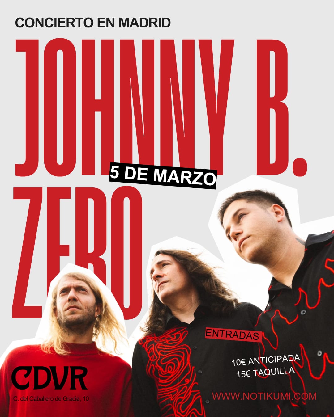 Johnny B Zero el jueves 5 de marzo en Madrid. El trío valenciano Johnny B. Zero sigue presentando su nuevo álbum, “Pequeños Calvarios”, publicado en octubre de 2025.