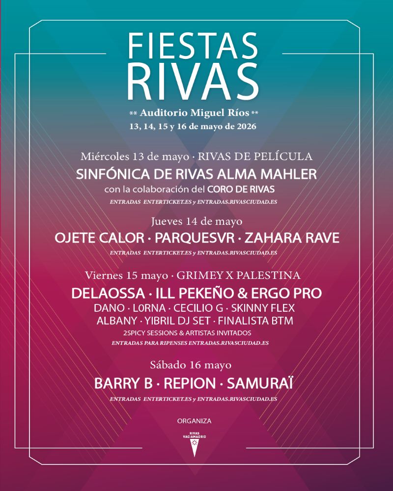 Con todo ello las Fiestas de Rivas 2026, confirman una apuesta por la diversidad sonora y la calidad artística convirtiendo a Rivas en un punto de encuentro imprescindible para disfrutar de la mejor música en directo cada primavera.