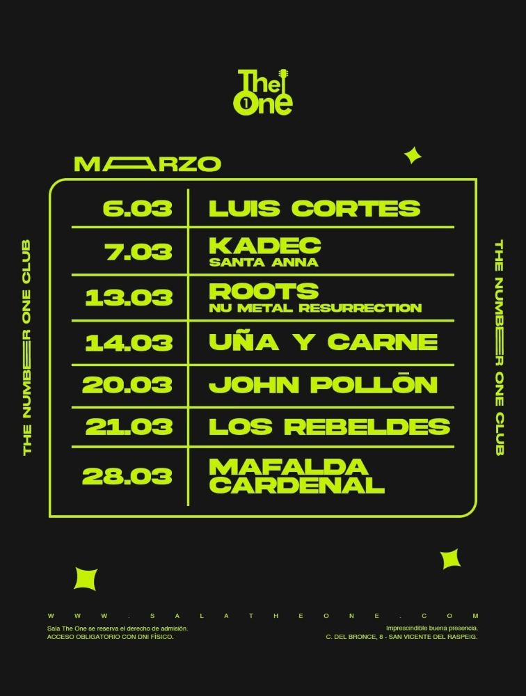 San Vicente del Raspeig, Alicante — Sala The One continúa consolidándose como uno de los espacios de referencia del directo en la provincia con una programación diversa que abarca pop, rock, urbano y festivales temáticos.